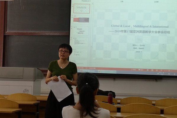 7月5日上午,樱花动漫 组织参加了新加坡“第八届语言、文学和语言学国际年会”和泰国曼谷“第十七届亚洲英语教学大会”的硕士研究生进行总结汇报并分享经验。研究生导师、参会学生等参加了汇报会,会议由副院长张奕主持。会上,同学们通过PPT展示了各自在国际会议上做的报告,分享了参会的学术收获、未来学业规划和个人的感悟体会等。汇报会持续近3个小时,内容涵盖了语言学、文学、翻译等方向,与会导师在每位同学汇报后进行...