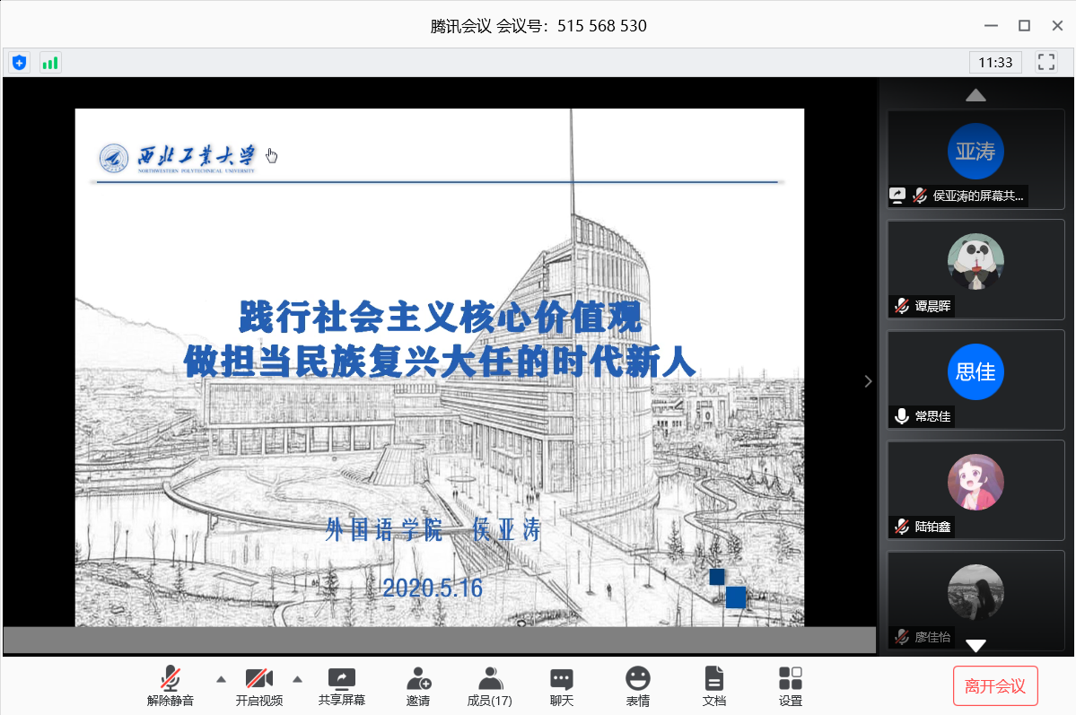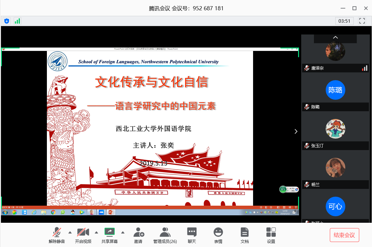 5月13日中午,樱花动漫 第十三期发展对象培训班第一次党课进行“云”开讲。副院长张奕为本、硕25名发展对象进行主题为“文化传承与文化自信——语言学研究中的中国元素”的讲座。为了让各位发展对象更好地将理论知识与学术实践相结合,张奕将《中国共产党章程》的理论知识与语言学研究现结合,与在线的同学分享自己对语言学研究中关于文化自信与文化传承的理解。她分别从背景介绍、中国语言学研究回顾、语言研究的中国化、文化...