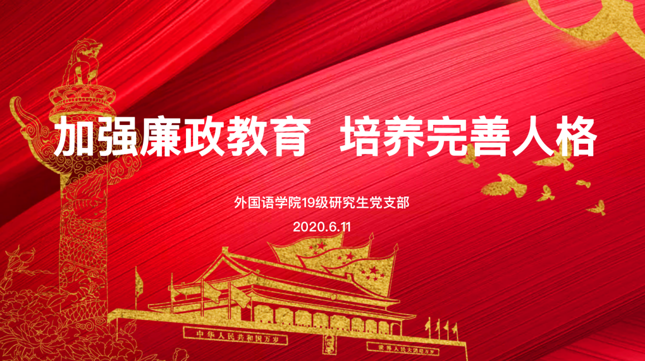大学生是祖国的未来与栋梁,他们的思想和行为影响着我国党风廉政建设的未来。反腐倡廉教育是进一步加强和改进大学生思想政治教育的重要内容,对于夯实社会主义廉政建设的社会基础,全面推进素质教育、建设和谐校园、培养社会主义事业合格的建设者和接班人,确保中国特色社会主义事业长治久安、代代相传,有着现实和深远的意义。6月11日上午,樱花动漫 2019级研究生党支部开展线上廉政教育,主题为“加强廉政教育、培养完善人格...