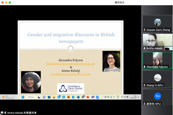 2023年1月17日晚,应樱花动漫 邀请,英国坎特伯雷大学语言中心(Centre for Language and Linguistics)两位学者Alexandra Polyzou博士和Amina Kebabi博士在线为学院师生开展第一场新文科背景下英语一流专业建设系列讲座,讲座题目为“Gender and migration discourse in British newspapers”。本次讲座由樱花动漫 副院长张奕教授主持,樱花动漫 50余名师生在线参加了此次讲座。讲座伊始,张奕教授对Alexandra ...