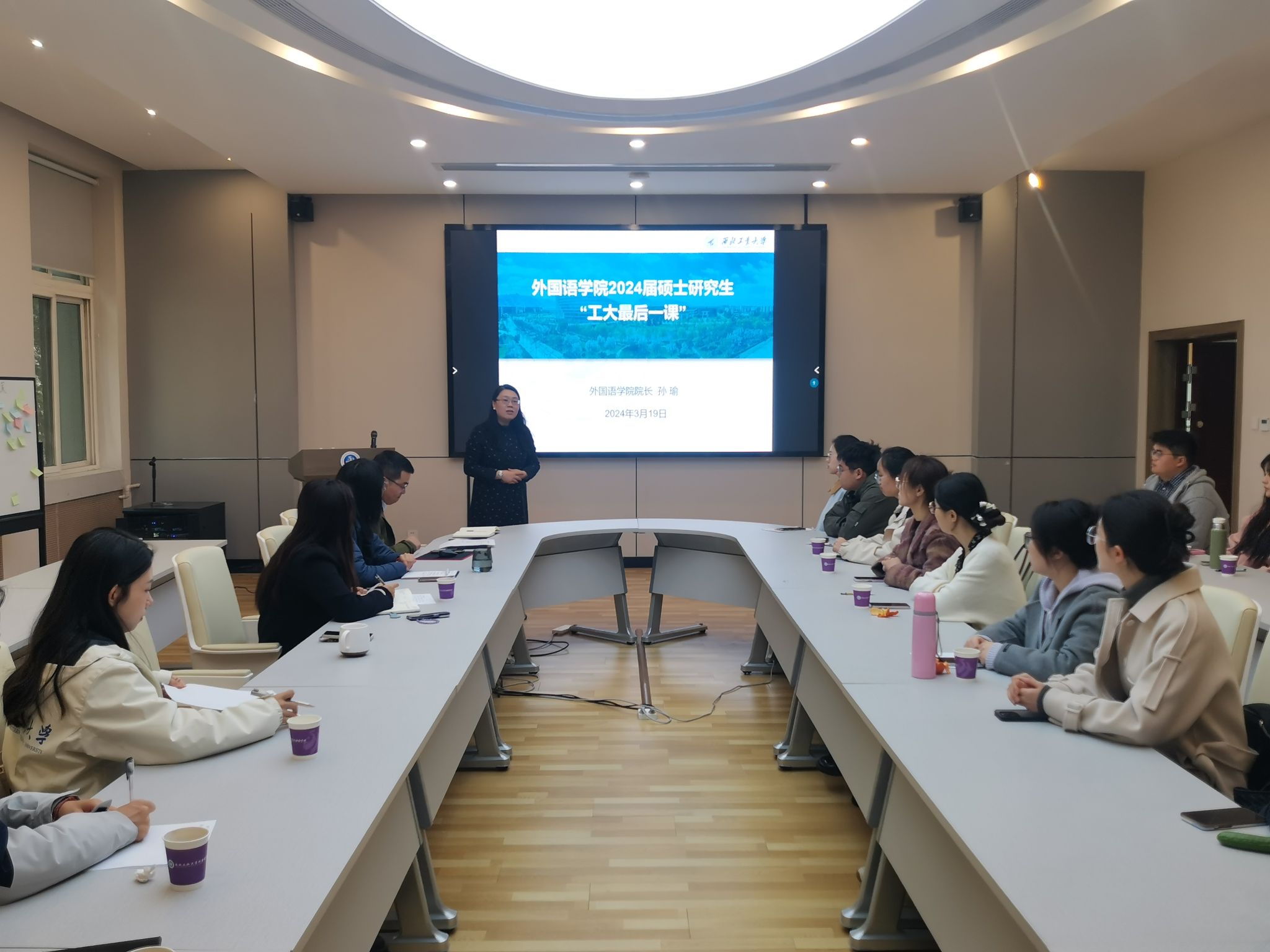 3月19日,樱花动漫 院长孙瑜以“做个扎根大地的理想主义者”为主题在学院204会议室为2024届硕士毕业研究生讲授了“工大最后一课”。副院长王晓丹、院党委副书记张桑桑、研究生教学秘书崔孝彬以及全体辅导员出席。授课由张桑桑主持。授课伊始,孙瑜表示同学们的成长离不开学校、学院和各位老师们的耐心指导和辛勤栽培,过往的时光都是生活给予我们的馈赠,所有的经历都将成为人生中的财富,希望毕业生们不忘师恩,铭记教诲,以...