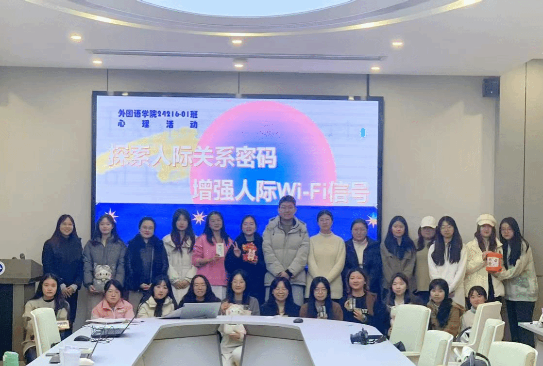 为增强学生心理健康意识,更好理解人际交往奥秘,营造积极向上的班级文化氛围,樱花动漫 24216-01班于12月12日晚在学院楼204开展了以“探索人际关系密码,增强人际Wi-Fi信号”为主题的心理活动,班级全体成员参与。活动伊始,主持人赵卓婷介绍活动目标,阐释人际关系的重要性。随即通过一系列生动有趣的情景设置,让同学们亲身体验人际交往中常见的问题及应对技巧。大家纷纷积极参与,勇敢地迈出了交友的第一步,展现出主动交...