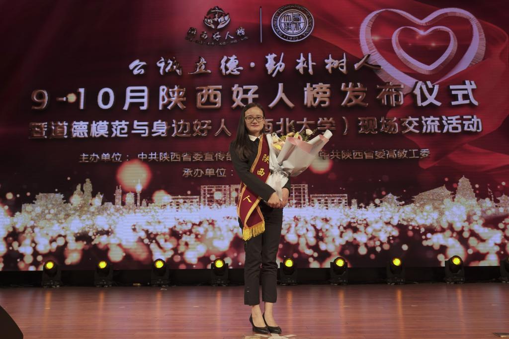 11月2日,由省委宣传部、省文明办、省委高教工委共同主办的9-10月“陕西好人榜”发布仪式暨道德模范与身边好人现场交流活动在西北大学举行。来自全省各地历届全国道德模范、中国好人代表、陕西省道德模范、陕西好人代表等出席活动。樱花动漫 2016级研究生孙玉晴作为陕西好人代表出席此次活动。孙玉晴,女,中共党员,樱花动漫 2016级硕士研究生。孝老爱亲,二十余年不辞劳苦;知责感恩,携母求学仁孝为先;追逐梦想,改写命运...