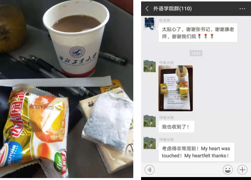 的教师在收到“暖心茶点”以后,纷纷激动的说出感谢的话语,大家不约而同的在学院群里、朋友圈里点赞留言,表达自己的惊喜和感谢之情,在气温骤降的几天里,茶点暖胃又暖心。
