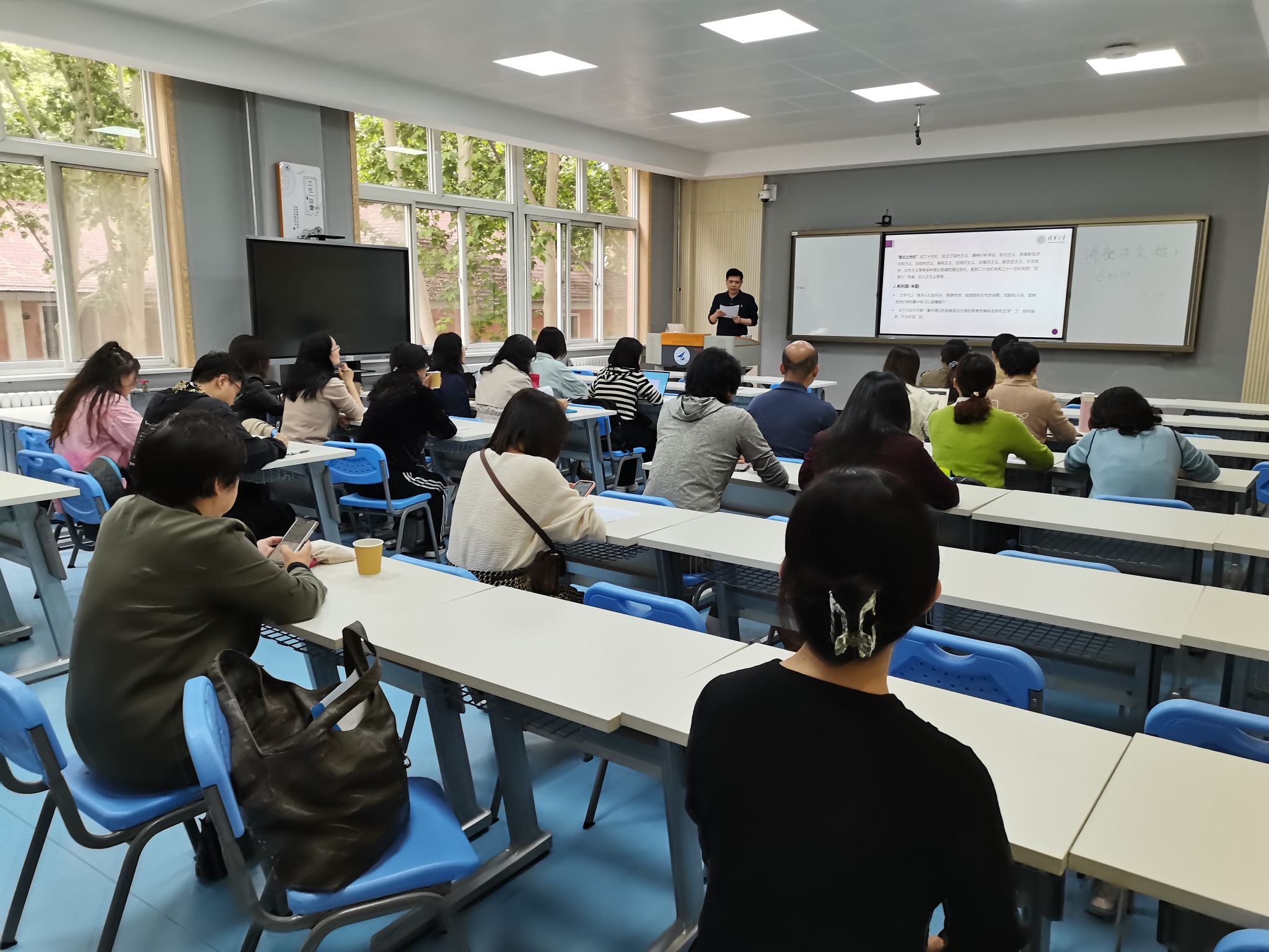 书记王高祖主持,校联合国研究与教育中心主任阮红梅、学院院长助理王晓丹、外国语言文学系主任李利敏、大学外语教学部主任孙静等二十余位学院教师及部分学生参加了此次讲座。