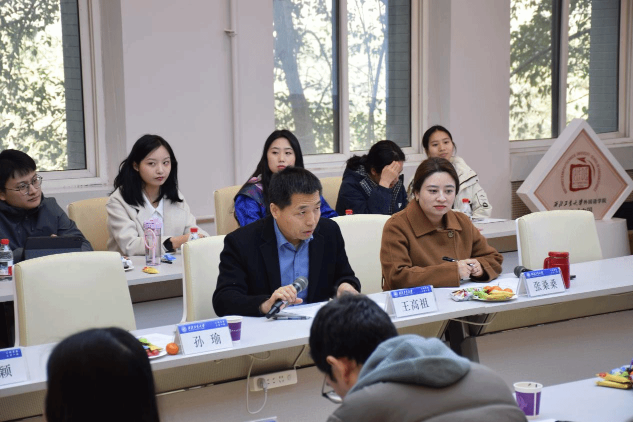 在204会议室举办2026届硕士研究生毕业座谈会。院长孙瑜、院党委书记王高祖、副院长马颖、导师代表、辅导员以及2026届硕士毕业生齐聚一堂,共同回顾求学时光,畅谈未来规划。座谈由院党委副书记张桑桑主持。