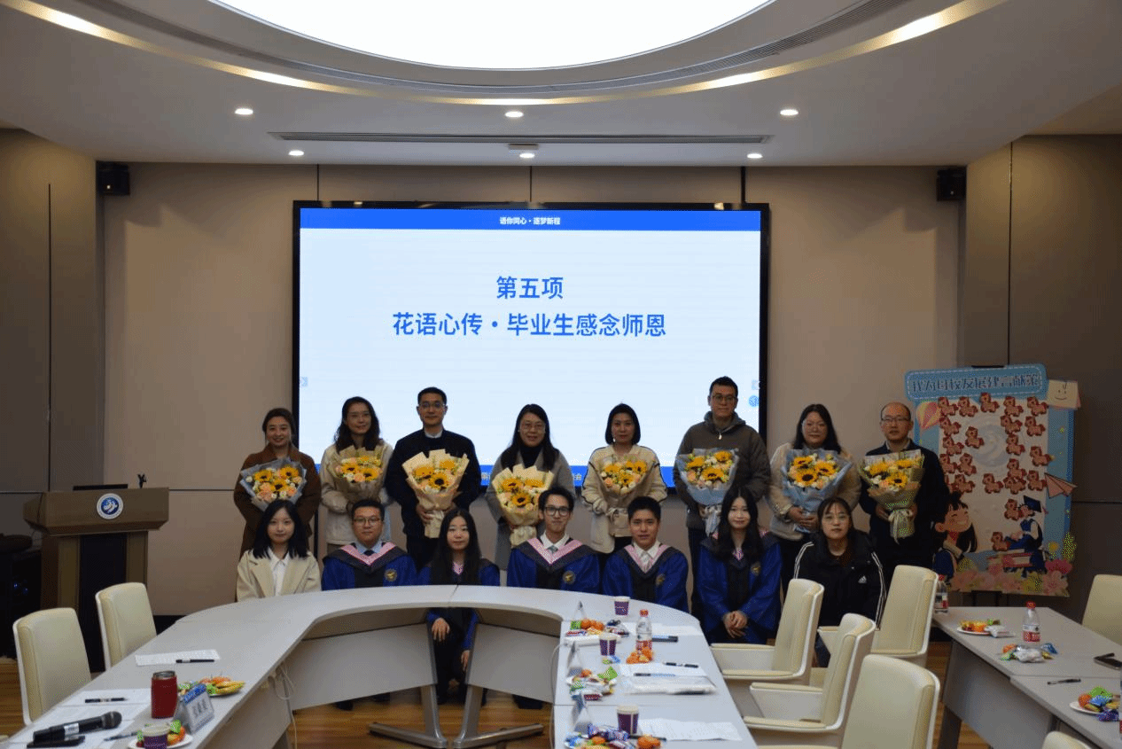面对即将踏上人生新征程的学子,导师代表王均松、王倩、车向前、王譞等送上深情寄语。他们强调,毕业从来不是人生的终点,而是开启全新旅程的新起点。在这个充满不确定性的时代,希望同学们始终保持身心健康,持续学习,不断培养独立的逻辑思维和批判性精神,从容应对未来的各种挑战。随后,在“花语心传”环节,毕业生代表为老师献上鲜花,以表感恩之情。