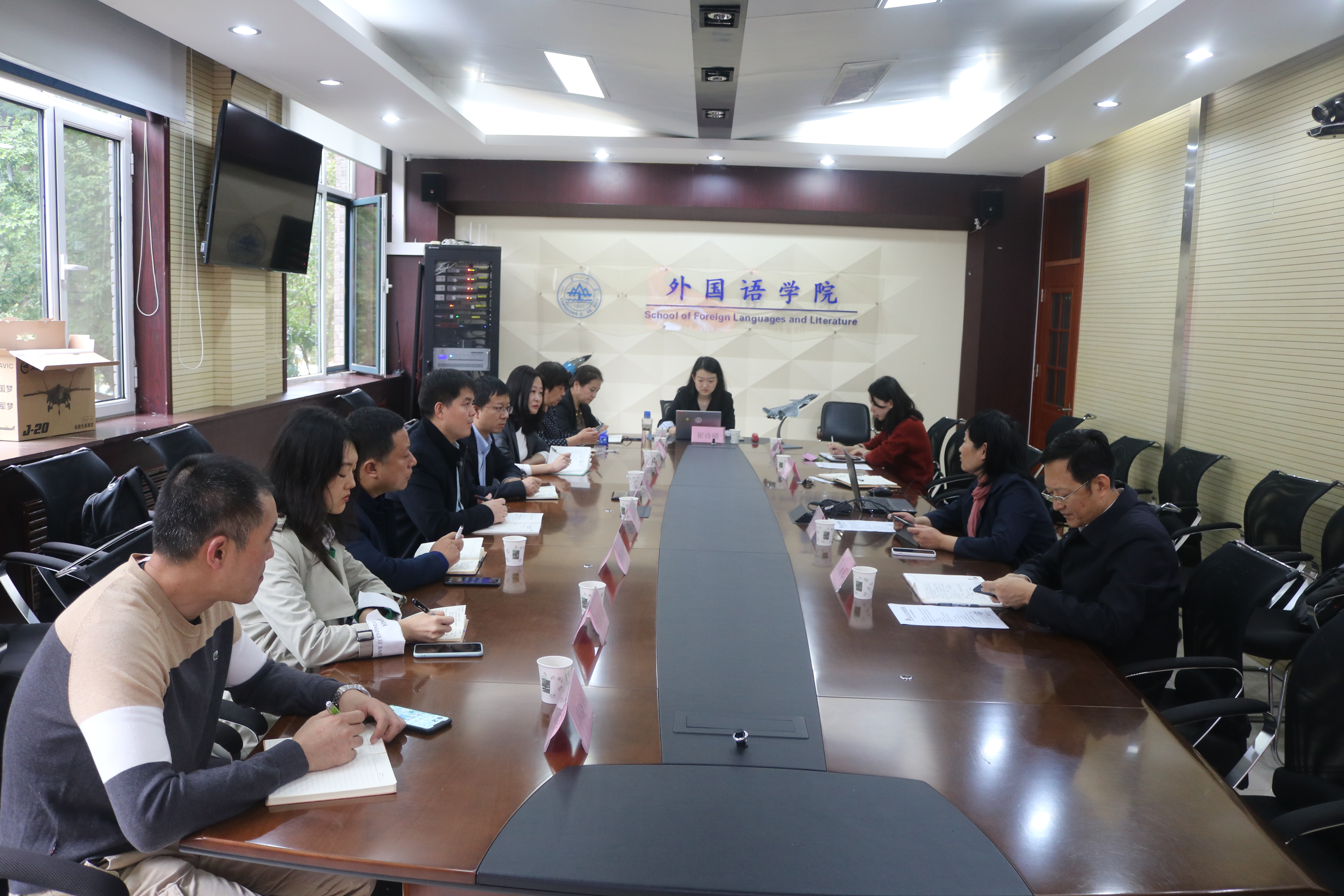 副院长周爽,基地副主任、国际合作处副处长陈俊,教务处副处长孙中奎,大学外语教学部主任孙静,模联负责人阮红梅及樱花动漫