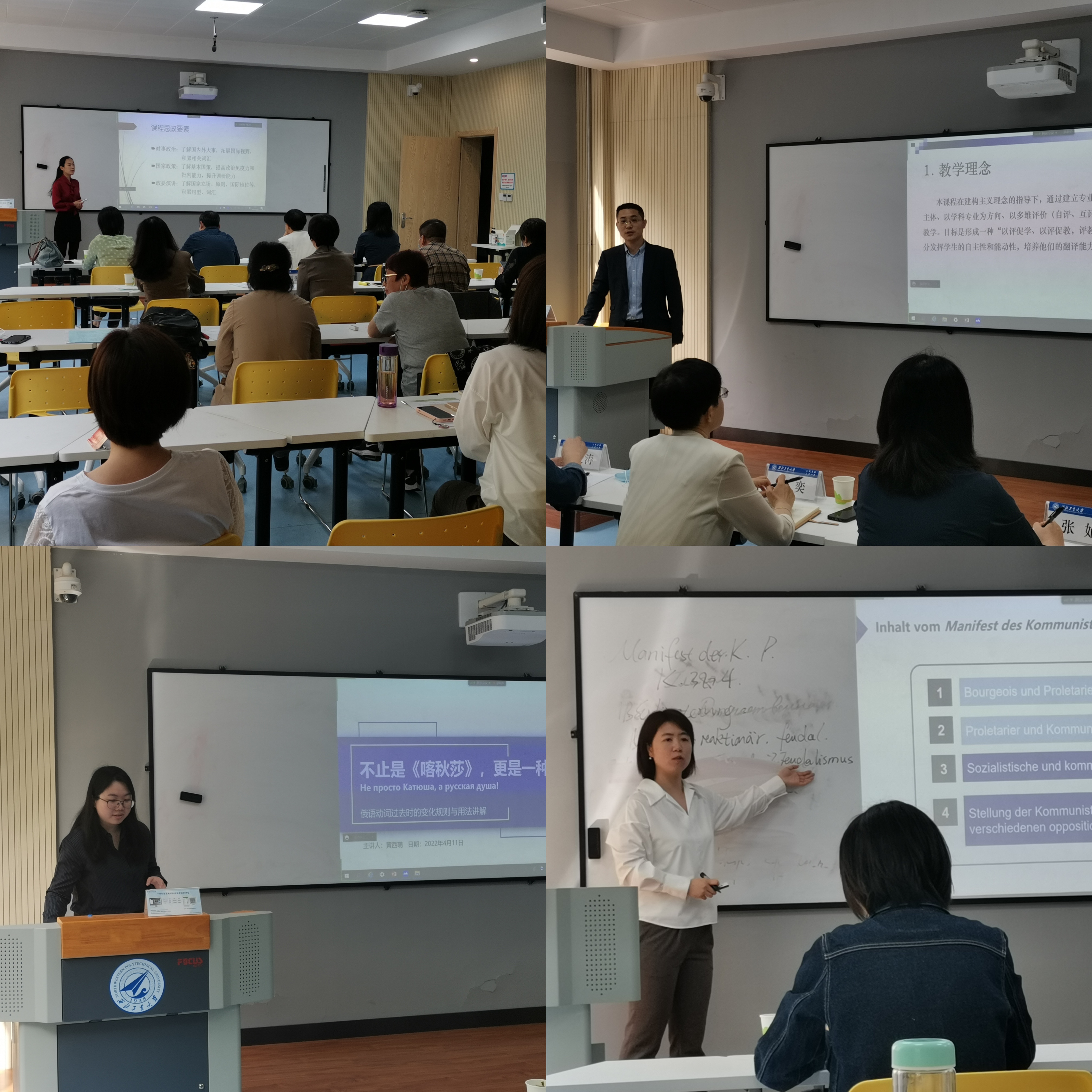 本次比赛共有来自文学系、大学英语教学部、研究生公共外语教学部和语言实验室的8位教师参赛,涵盖英语、德语、俄语和汉语多个语种。比赛分为5分钟的课程综述和10分钟“课程思政”环节教学展示。教师基于不同课程类型和教学内容,从不同角度阐述和展现“外语课程思政”,语言流畅,概念准确,教学过程设计环环相扣、新颖独到,思政元素融合自然,润物无声。在短短的15分钟内,各位老师结合自身教学实际,充分展示了各自的教学风采,给现场观众以强烈的感染力,并充分发挥外语学科人文性特征,多元化地阐释了外语课程思政的独特魅力。