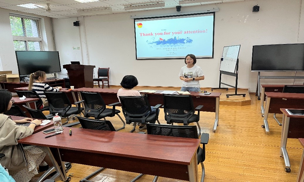 接着,郭昕对此次汇报进行了总结。她首先强调同学们要不断加深党课理论知识的学习,并提醒同学们在准备英文微党课时一定要注意课程设计的逻辑性,最后希望外语专业的同学能够提升自身专业素质,为讲好中国故事打好基础。