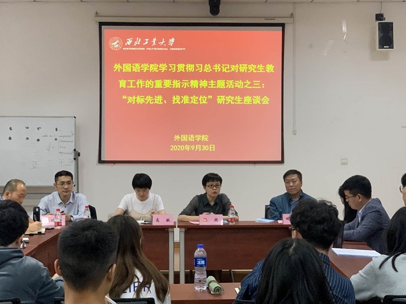 9月30日,外国语学院在学院楼204会议室召开贯彻习近平总书记对研究生教育工作重要指示精神主题活动之三:“对标先进,找准定位”研究生座谈会。副院长张奕、研究生导师代表田建国、研究生教师代表王均松、王譞以及樱花动漫