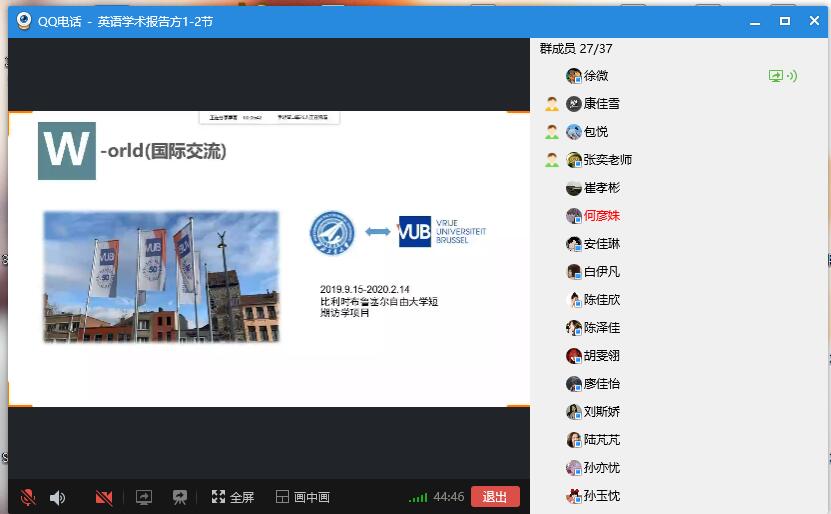 2018级在读研究生徐微也分享了读研的成长和收获,她介绍了自己的奖学金获奖情况、学术成长过程、多次受学校资助参加国际会议的经历以及在比利时布鲁塞尔自由大学短期访学的经历。她以自己的切身感受向同学们表达了本校读研的无悔青春和对学校、学院、导师的感恩之情。