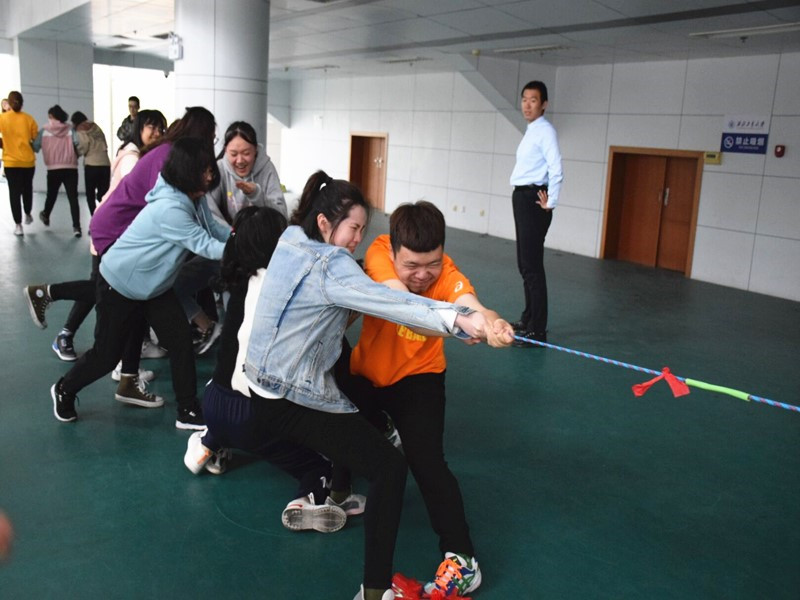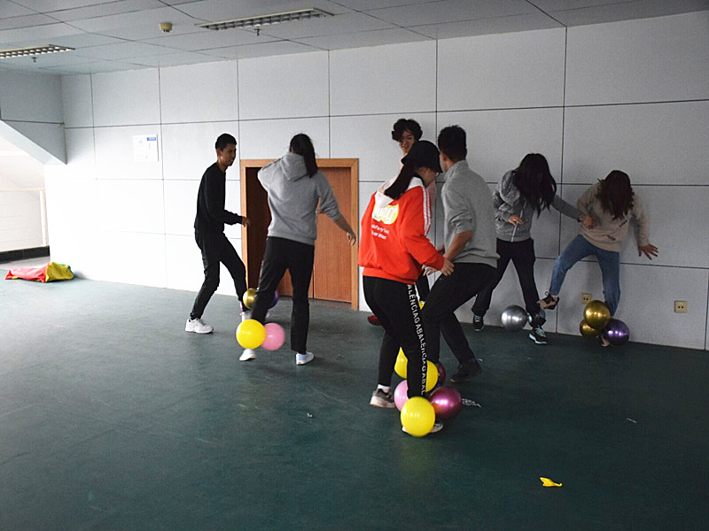 为了给集体争得更多的荣誉,同学们在各个环节均展现了合作与默契的高度配合。场边未参赛的学生高声呐喊、为本班队员加油助威。在极其考研团队精神的“五人六足”环节,尽管各队都出现步调不一甚至摔倒的现象,然而大家都怀着“友谊第一,比赛第二”的心态,为彼此加油鼓气。如果要说到最激动人心的时刻,莫过于踩气球的环节,让同学们暂时忘掉了繁重的学业压力与入秋带来的清冷和沉闷,将比赛氛围推向了高潮。