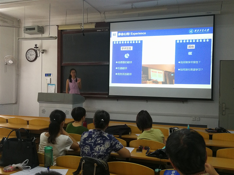 会上,同学们通过PPT展示了各自在国际会议上做的报告,分享了参会的学术收获、未来学业规划和个人的感悟体会等。汇报会持续近3个小时,内容涵盖了语言学、文学、翻译等方向,与会导师在每位同学汇报后进行细致地提问和点评,并与之充分交流。