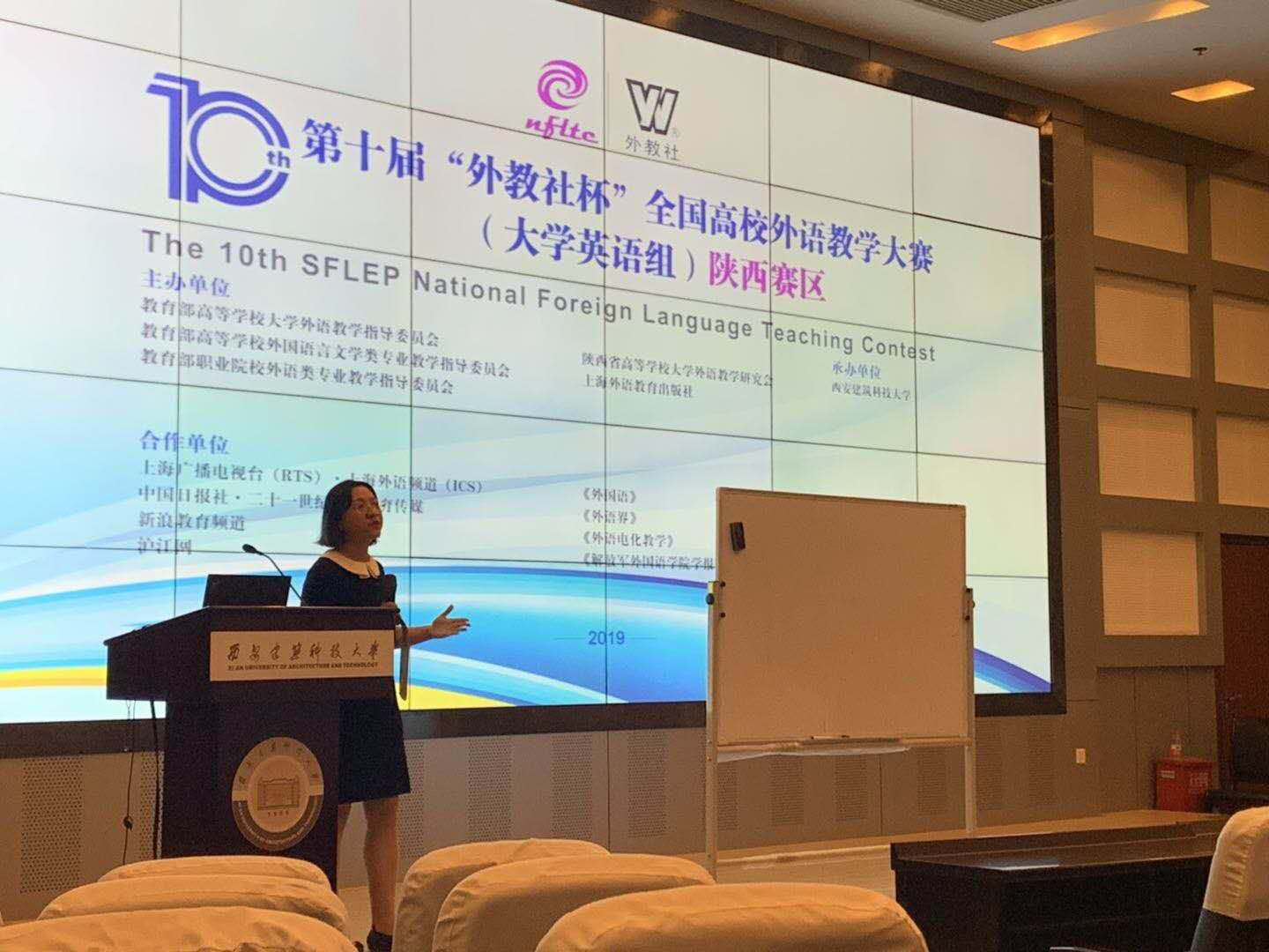 2019年6月28—30日,在西安建筑科技大学雁塔校区,第十届“外教社杯”全国高校外语教学大赛 (大学英语组)陕西赛区如期举行。来自陕西省40所高校的80多位英语教学精英汇聚一堂,切磋教学技能,展现自我,对英语教学精益求精。此次比赛分为复赛和决赛,经过复赛组说课和讲课排位赛,及决赛三十分钟随堂课堂设计及评委提问环节的激烈角逐,我校樱花动漫 大学英语教学部屈江丽老师在众多教师中脱颖而出,以综合成绩排名第四名获得综合组二等奖。