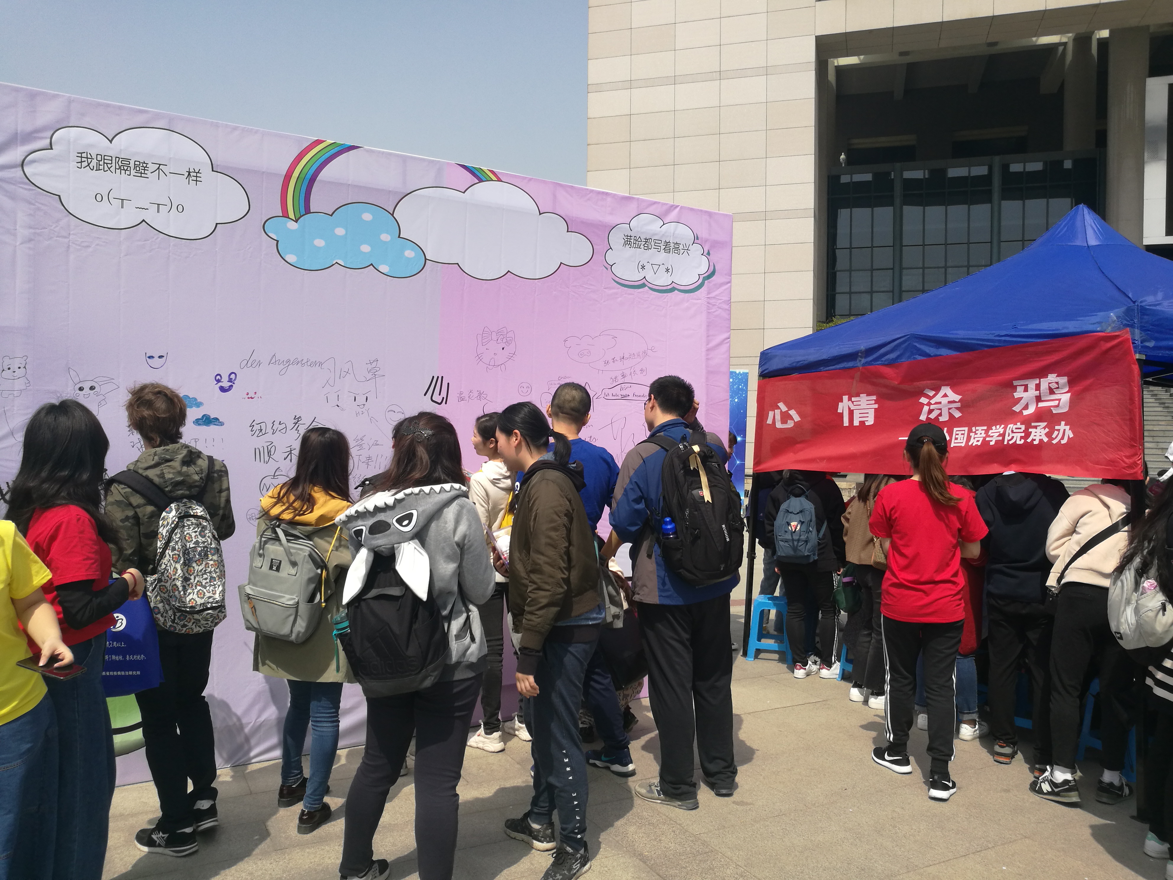承办的“心情涂鸦”活动如期开展。经过前期精心准备,最终选取背板涂鸦、T恤涂鸦、画板模具和人偶涂鸦作为本次涂鸦活动的主要内容。