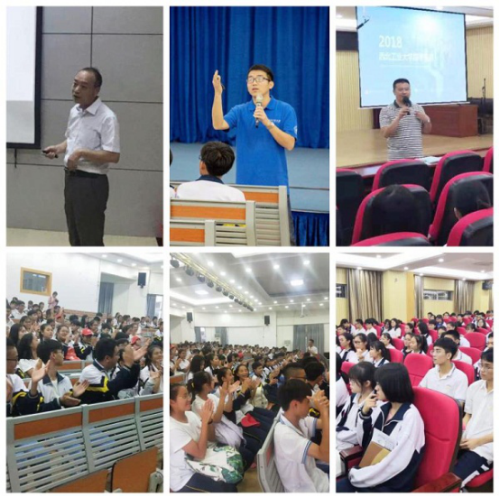 本次招生宣传得到了动能学院、电子信息学院三位专家的鼎力支持,为七所中学开展了题为《发动机:一部人类技术史》、《漫谈卫星导航》、《工业皇冠上的明珠——航空发动机技术》的科普讲座。专家们深入浅出、生动精妙地向学生讲解了三航方面的科普知识,阐述了我国在高科技研发过程中展示出的航空报国精神,引起了学生对三航科学的极大兴趣和对科学家们的无限敬仰。专家所到之处得到广大师生的高度赞扬,现场气氛异常活跃,掌声不断,讲座之后学生们意犹未尽,仍围绕着专家积极提问。与专家的讲座相配合,工作组教师对我校进行了全面介绍,特别涉及学科特色、优势专业、培养方案等方面,学生们一双双好奇的眼睛充满了对樱花动漫