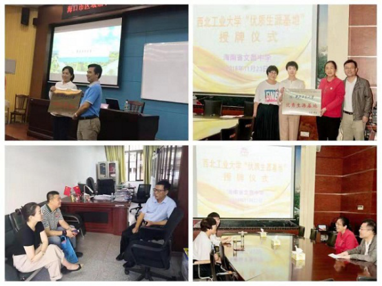 时值海南省建省30周年,诸多中学举行校庆,为借此契机,广泛宣传我校,在为期20余日的招生宣传工作中,工作组赶赴嘉积中学101年校庆,海南中学100周年校庆,华侨中学80周年校庆,文昌中学110周年校庆。分别向四个学校递交了贺信,赠送航模纪念品,并在华侨中学、文昌中学校庆之际,为其举行“优秀生源基地”授牌仪式,签署“优秀生源基地协议书”,特别为华侨中学安排了专题科普讲座,为文昌中学安排了航模表演。工作组的到访得到各中学的热烈欢迎,并在其学校媒体上进行了宣传报道。巧遇航天英雄杨利伟出席文昌中学校庆典礼,从侧面有力地宣传了我校。