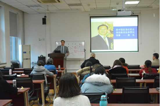 袁东教授曾在美国领事馆工作多年,基于多年的研究及工作经验对美国文化及中美人文交流有着深刻的理解。袁东教授的讲座首先以科普中国外交机构为引,带入了今天的主题:中美教育与人文交流。袁东教授讲到:国际化教育是美国高校发展的重要战略,而我国高校教育国际化的发展是从改革开放开始的,随着中国留学生人数的逐年增加,现今我国已成为全世界最大的留学生源国。随着中国走向国际化,中美之间的人文交流越来越多,也对中美关系带来一定影响。以教育为核心的中美交流不仅促进了中国高等教育的发展,也随之带来了许多的问题与挑战。袁东教授以许多具体的事例为学院师生解读了中美人文交流,以及对未来的展望。讲座的最后,学院师生对袁东教授幽默生动的讲座报以热烈的掌声。