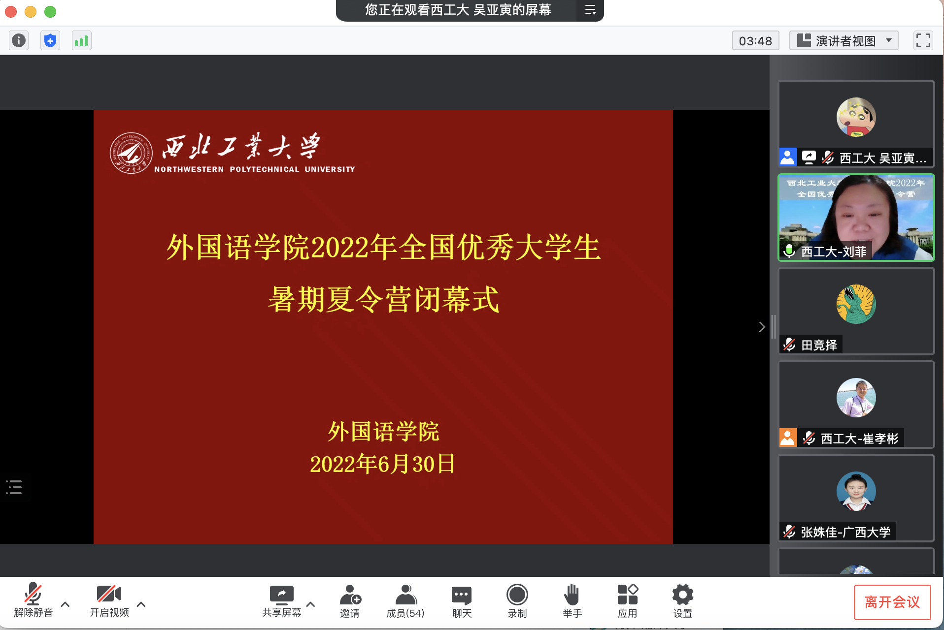 本次夏令营活动组织精心细致,师生参与程度高,宣传效果良好,申请学生包括西安交通大学、中国海洋大学、西北农林科技大学、郑州大学、西北大学、上海外国语大学等83所高校共计137名同学,经过严格审核,最终75名同学进入夏令营。本次活动不仅广泛宣传了樱花动漫