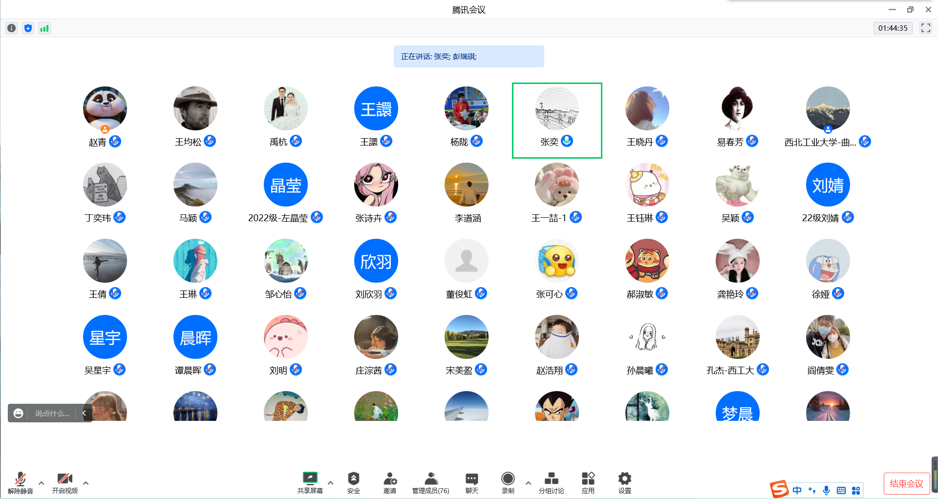 在腾讯会议平台召开2022级硕士研究生及导师见面会。院长孔杰、院党委书记王高祖、副院长臧小佳、院党委副书记马颖、全体研究生导师、研究生教学秘书、辅导员及全体2022级硕士研究生参加了此次会议。会议由副院长张奕主持。