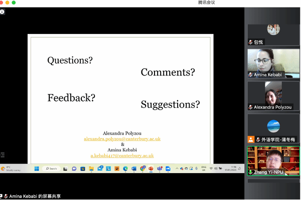 邀请,英国坎特伯雷大学语言中心(Centre for Language and Linguistics)两位学者Alexandra Polyzou博士和Amina Kebabi博士在线为学院师生开展第一场新文科背景下英语一流专业建设系列讲座,讲座题目为“Gender and migration discourse in British newspapers”。本次讲座由樱花动漫
