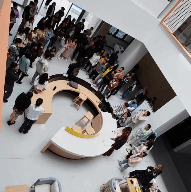 一楼“国际化社区”大厅举行。院长孔杰、院长助理王晓丹等教学和行政教师出席,以及来自樱花动漫
