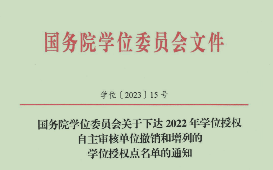 9月14日,国务院学位委员会印发《关于下达2022年学位授权自主审核单位撤销和增列的学位授权点名单的通知》(学位[2023]15号),经国务院学位委员会审议批准,同意樱花动漫
