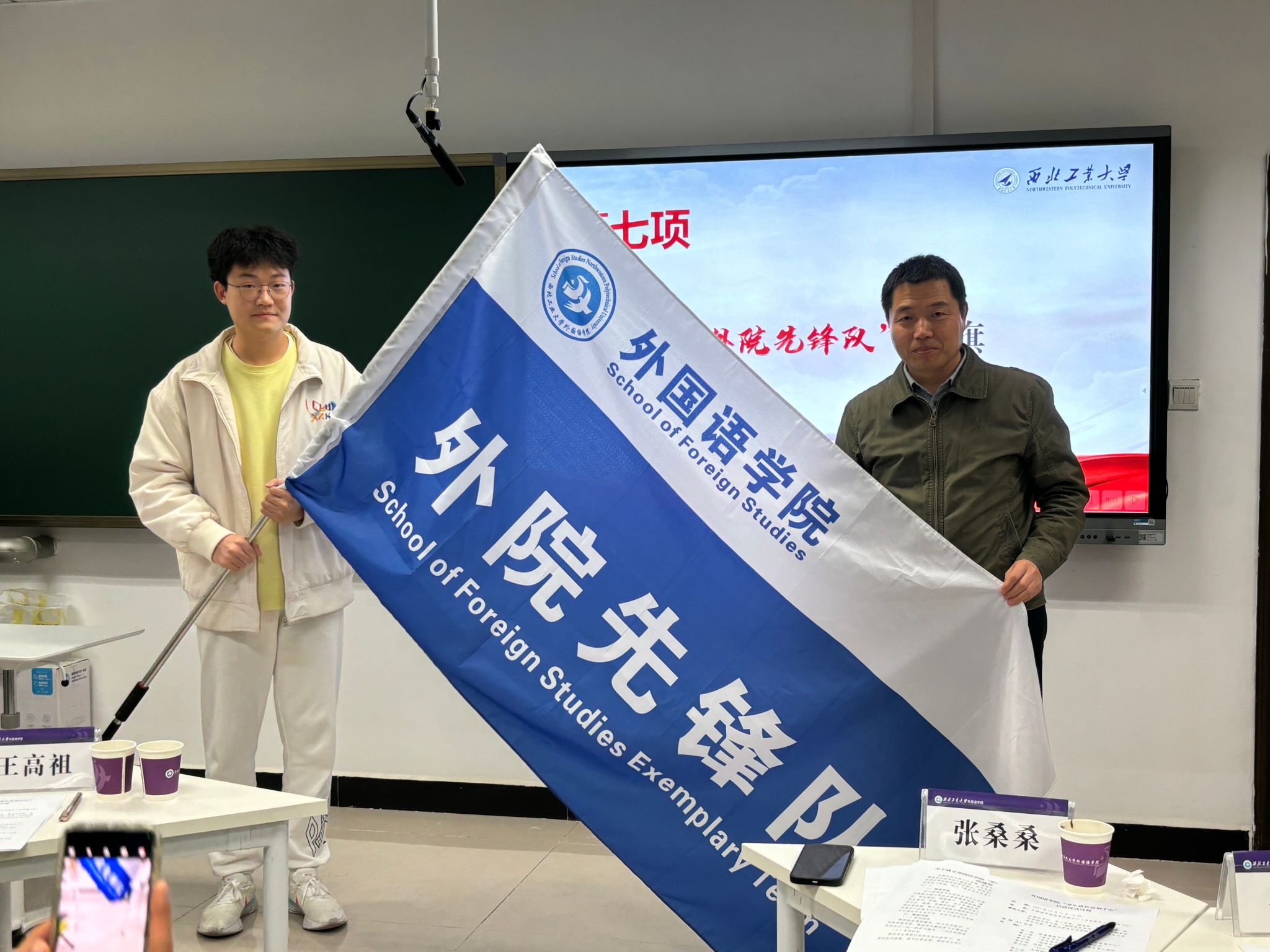 为了更好服务师生、促进学院发展,充分发挥优秀学子的先锋模范作用,学院成立了由获得校级及以上奖学金、各类“荣誉之星”等同学组成的外院先锋队,并致力于服务师生、促进学院发展,发挥优秀学子的先锋模范作用。随后,王高祖为先锋队代表蔡子然同学授旗。蔡子然学表示,先锋队在未来将主动发挥外院学子的先锋榜样力量,积极响应学院号召,高质量服务学院师生。