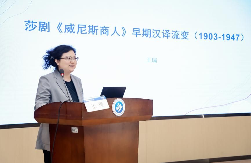 王瑞教授作题为“莎剧《威尼斯商人》早期汉译流变(1903-1947)”的主旨报告。她以20世纪上半叶国内对莎剧《威尼斯商人》的22种汉译为研究对象,提出早期《威尼斯商人》的汉译不仅反映了国人对莎剧认知的深化过程,更折射出中国社会文化语境变迁,既体现了翻译观念的演进,也彰显了莎剧汉译从文化传播工具到文学经典建构的功能转型。