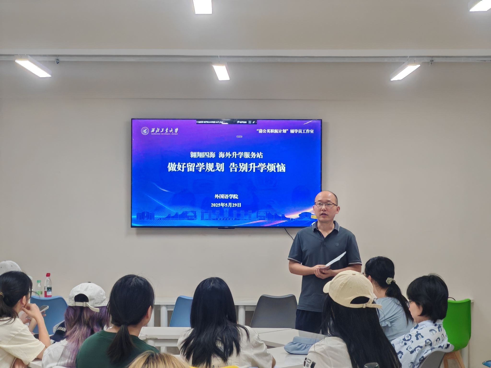 在云天苑B座153“一站式社区”面向2024级本科生开展“做好留学规划 告别升学烦恼”专题辅导。我校留学服务中心李婵老师受邀以“留学如何为职业发展赋能”为题做分享。活动由辅导员赵青主持。