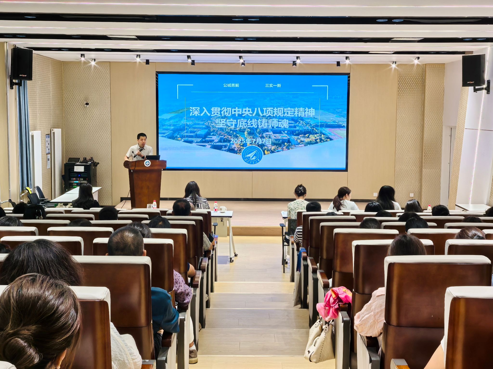 党委书记王高祖以“深入贯彻中央八项规定精神,坚守底线铸师魂”为主题,对深入贯彻中央八项规定精神学习教育开展以来学院学查改情况进行了通报,并通过案例分析提醒学院教职工要坚定理想信念,严守纪律规矩。随后,他强调要对标学校发展目标,凝心聚力、统筹专业、聚焦学科、加快转型。学院要进一步落实总师育人文化要求,培养一流外语拔尖人才;突出学校科技特色,凝聚学科发展方向,建设一流外国语言文学学科,力争与学校发展同频共振。